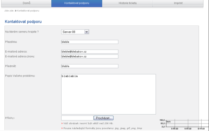 Kontakty: ticket system (vybrat server za který hrajete a do obsahu zprávy vepište že je určena GA) ,